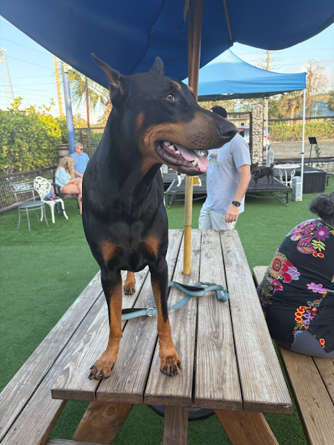 Boo's is a great place. Located in a former Ice House it features a play area for small dogs and one for larger dogs. The amazing thing (today) is that thirty or so dogs romped and raced with never a cross word.